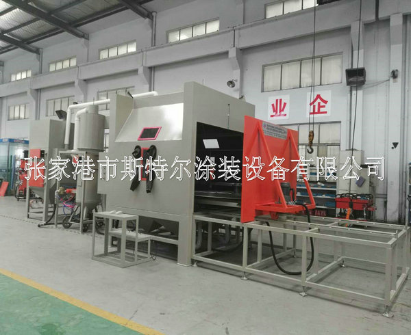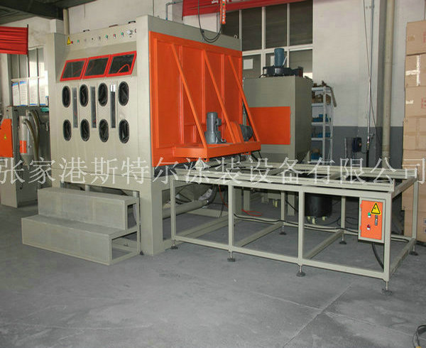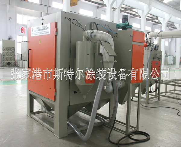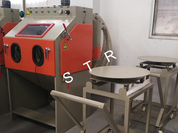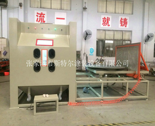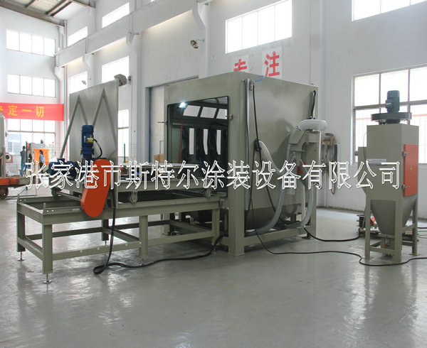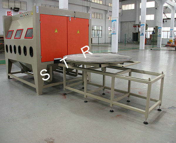The machines apply to all kinds of heavy workpiece surface piating, such as all kinds of mould surface pear to processing (sandblasting), mold textured and fog face treatment. The operation is convenient, can use rail cart on unloading, saving, processing efficiency. The machines can be designed according to the needs, for manual or automatic turntable, diameter and on volume.