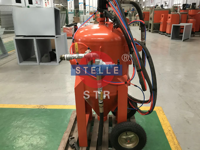 1、打開加砂口,將向下進氣軟管從控制柜上拆除,在罐內裝入水和磨料之前,用水沖洗噴砂罐內,放出沖洗的水,重新連接軟管。