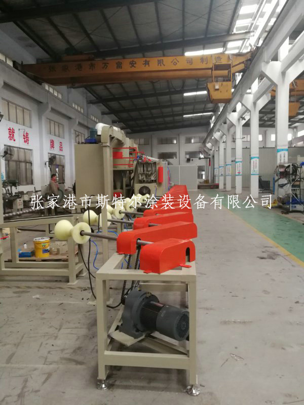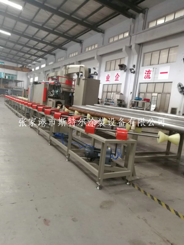加工廠區域φ273-800mm, φ273mm的管網憑借快慢會達到120m/h,采取變頻柜發電機調接;推送輪,采取包膠做工藝做,保證不碰傷軸類零件;性能活性炭過濾式加砂口9個;