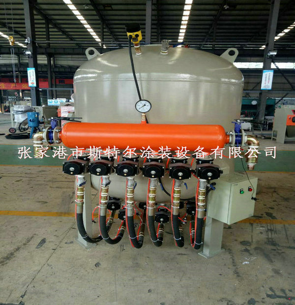 我公司研制的各型加壓式噴砂機,吸取了各家之長,在結構和配套上做了較大地改進,同時形成了固定的備件、易損件供應市場,便于掌握,使用和維修都很方便。具有除銹效率高,磨料和能源消耗低,并具有安全可靠、操作方便等特點。